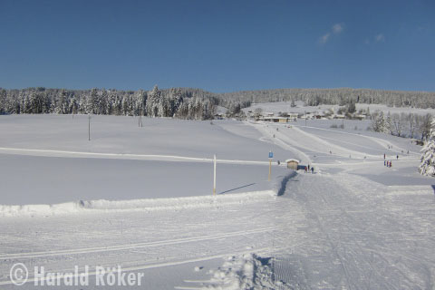 Je nach Schneelage etwa 17 km Skating und ca. 21 km Klassich.